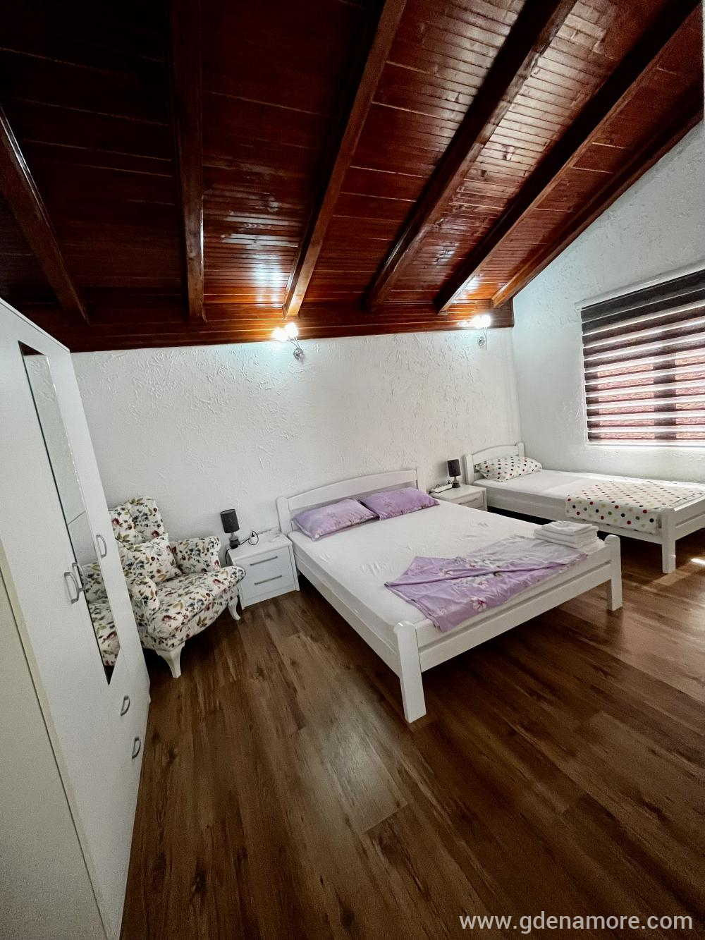 1 υπνοδωμάτιο με ένα κρεβάτι γαλλικού τύπου και ένα μονό κρεβάτι. 2 υπνοδωμάτια με 3 μονά κρεβάτια. 3 υπνοδωμάτια με κρεβάτι γαλλικού τύπου και πτυσσόμενο καναπέ.